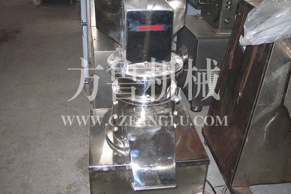 ??物料由進料斗送進粉碎室,經刀刃和刀座的沖擊,旋轉刀和固定刀同時剪切粉碎,由于受到旋轉離心力的作用,物料自動從出口處流出。